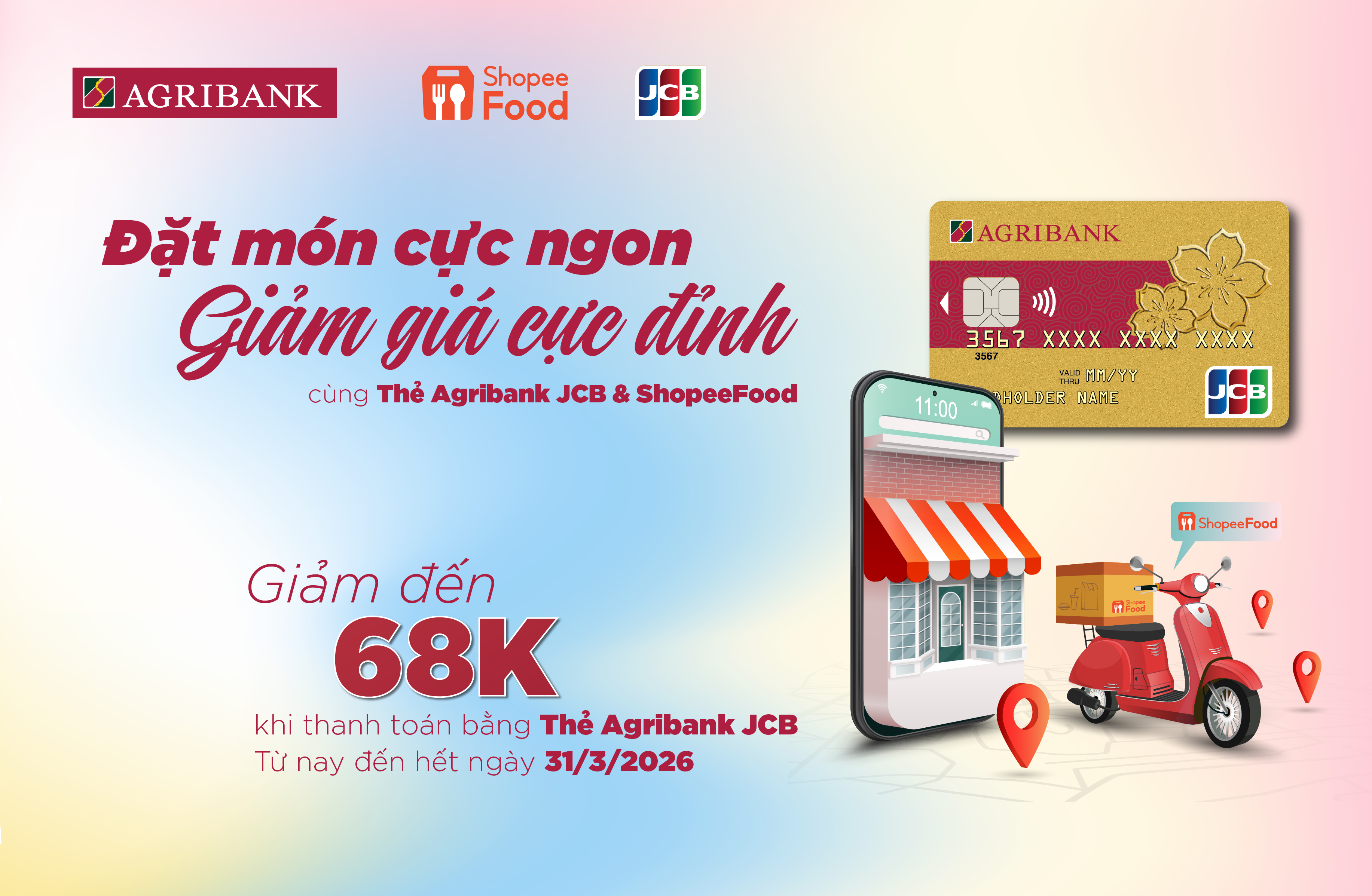 Đặt Món Cực Nhanh - Giảm Giá Cực Đỉnh cùng Thẻ Agribank JCB & ShopeeFood