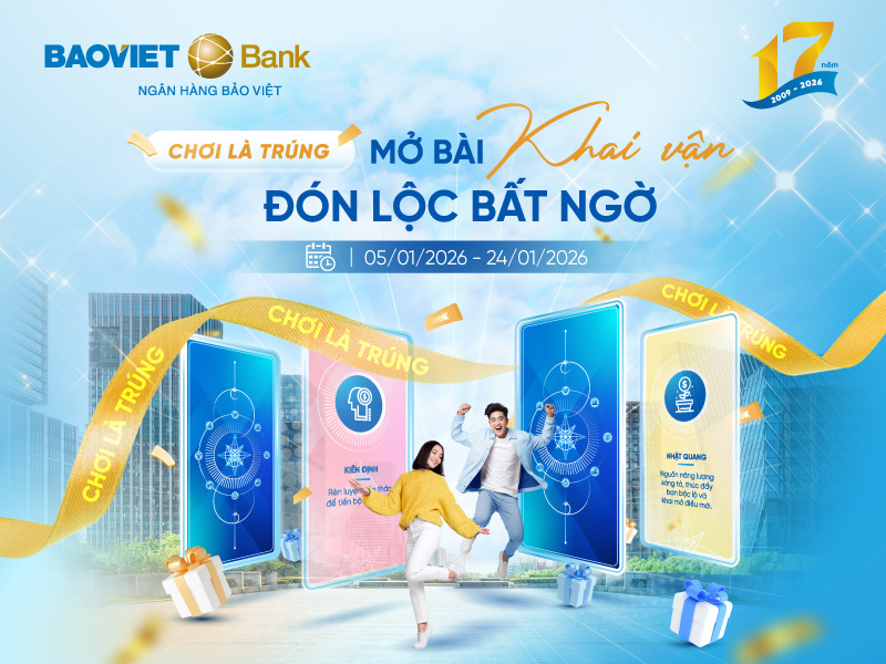 Nhân dịp kỷ niệm 17 năm thành lập Ngân hàng TMCP Bảo Việt, BAOVIET Bank ra mắt game “Lời chúc tưng bừng – Mừng sinh nhật lớn”, diễn ra từ 05/01 đến 24/01/2026 trên Fanpage và Website chính thức.