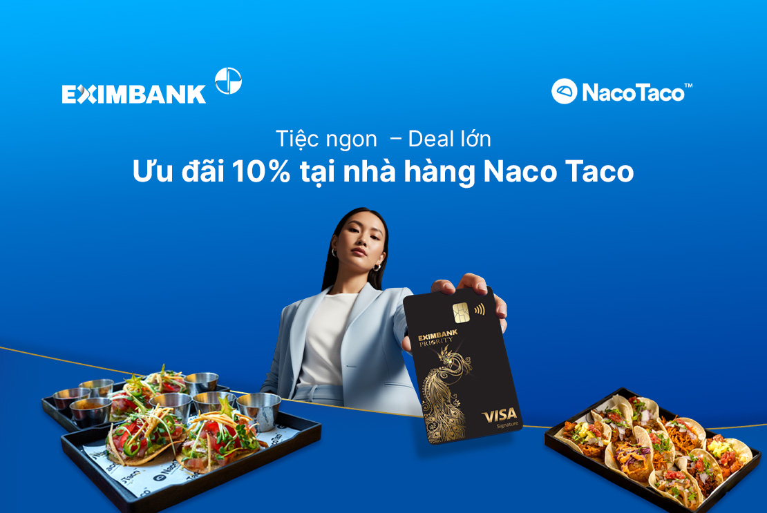 Giảm 10% tại Naco Taco dành cho chủ thẻ Eximbank