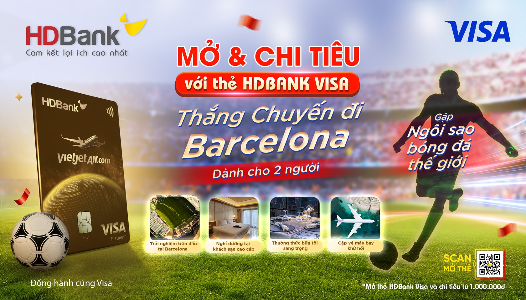 Mở thẻ và chi tiêu từ 1.000.000đ cùng HDBank Visa cơ hội nhận chuyến đi Barcelona trị giá 1.300.000.000đ