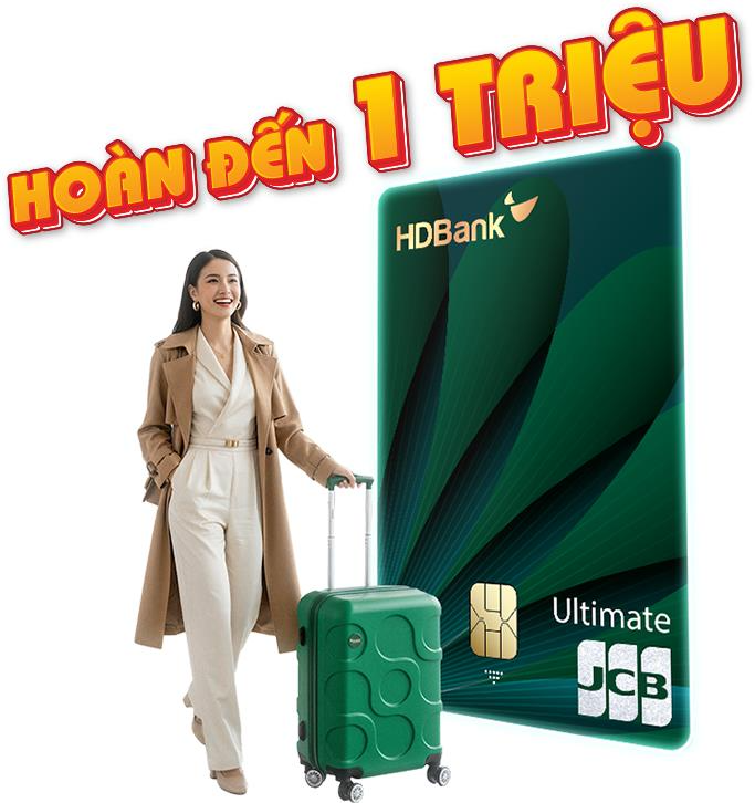 Mở mới thẻ HDBank JCB Ultimate từ 25/12/2025–25/04/2026, chi tiêu từ 3 triệu đồng nhận hoàn 20%, tối đa 1 triệu đồng. Hoàn 1 triệu đồng cho chủ thẻ HDBank JCB Ultimate có tổng doanh số giao dịch qua thẻ đạt từ 15 triệu đồng/tháng. Khám phá ngay!