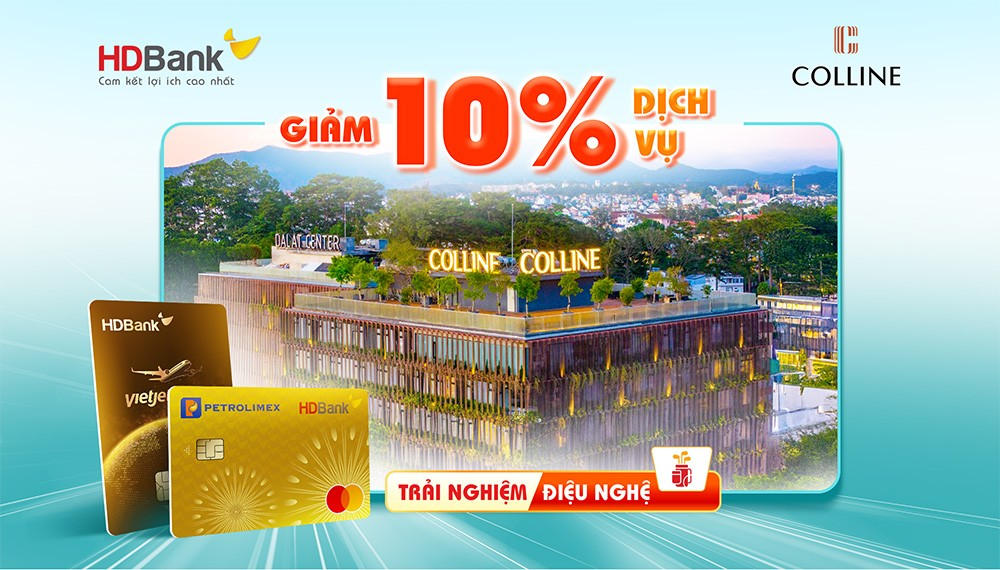 Trong thời gian khuyến mại, Giảm đến 10% hóa đơn dịch vụ tại Colline Hotel Đà Lạt khi thanh toán bằng thẻ tín dụng HDBank, cụ thể: