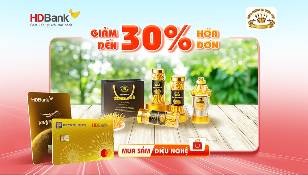 Trong thời gian khuyến mại, Giảm đến 30% hóa đơn tại Đông trùng hạ thảo Nguyên Quân khi thanh toán bằng thẻ tín dụng HDBank, cụ thể: