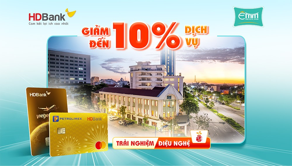 Trong thời gian khuyến mại, Giảm đến 10% hóa đơn dịch vụ tại ÊMM Hotels khi thanh toán bằng thẻ tín dụng HDBank, cụ thể: