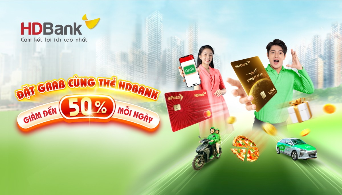 ƯU ĐÃI GRAB ĐẾN 50% CÙNG THẺ HDBANK