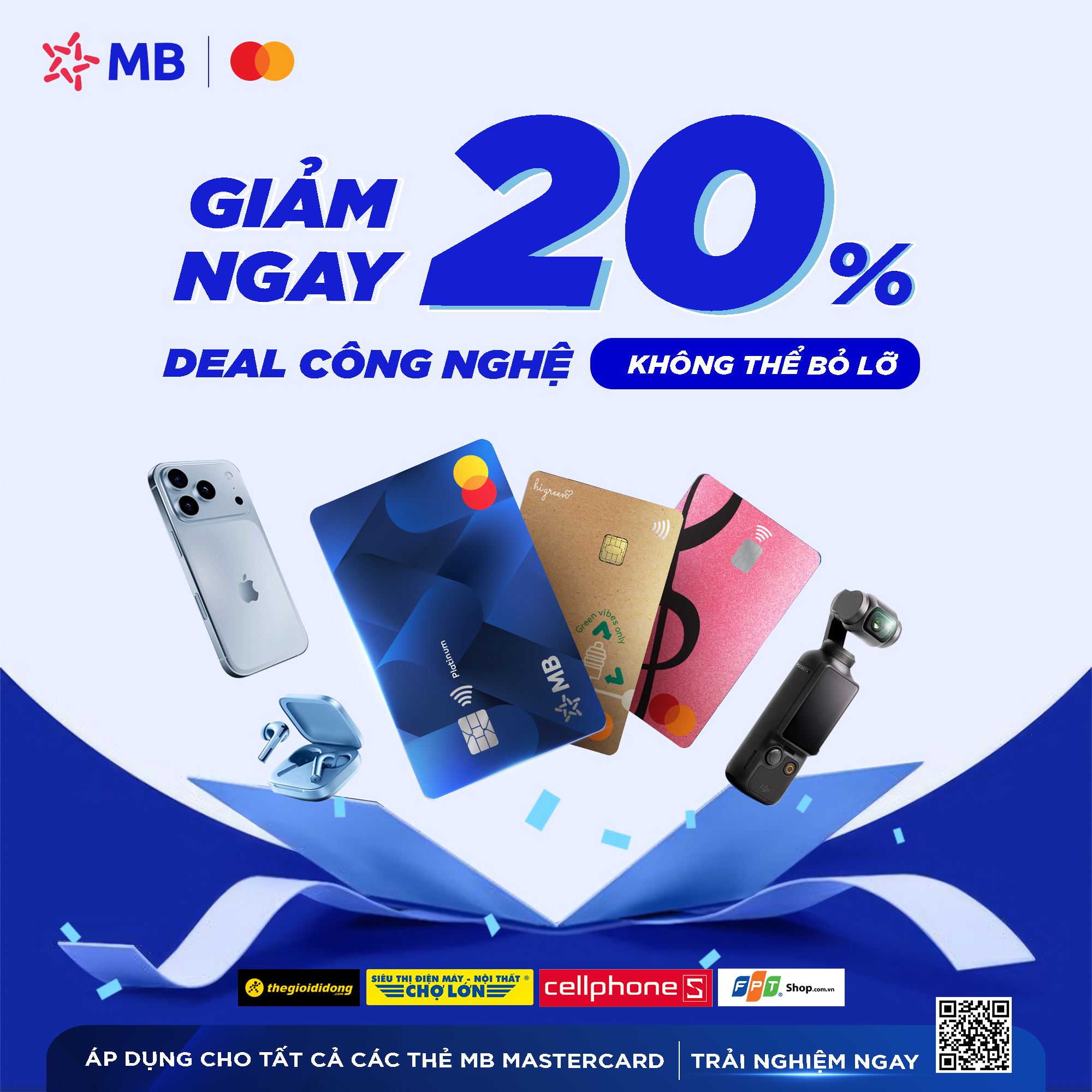 Giảm cực sâu 20% Deal Công nghệ với MB Mastercard