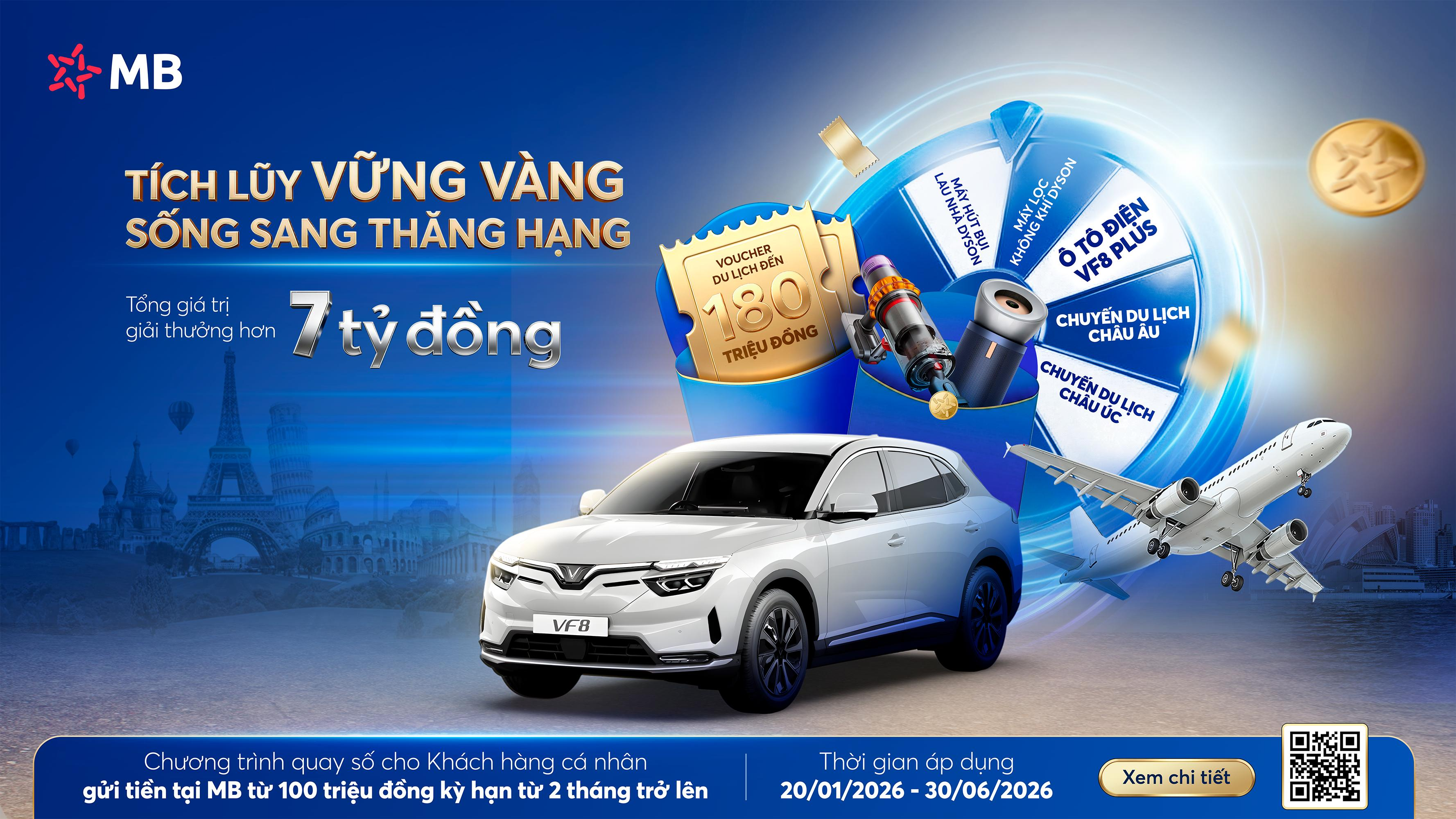 Nhằm gia tăng quyền lợi cho khách hàng cá nhân gửi tiền, Ngân hàng Quân đội (MB) chính thức triển khai chương trình huy động vốn dành cho khách hàng cá nhân, mang đến cơ hội tham gia nhận những phần quà giá trị với tổng giá trị giải thưởng lên tới hơn 7 tỷ đồng.