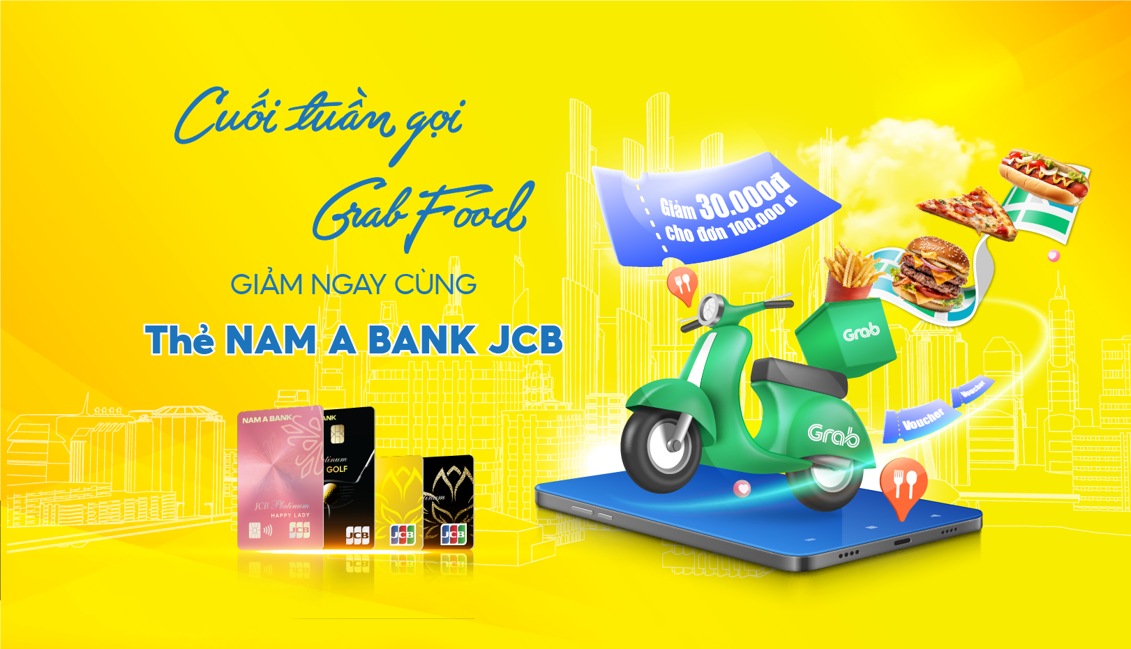 CUỐI TUẦN GỌI GRABFOOD - GIẢM NGAY CÙNG THẺ NAM A BANK JCB