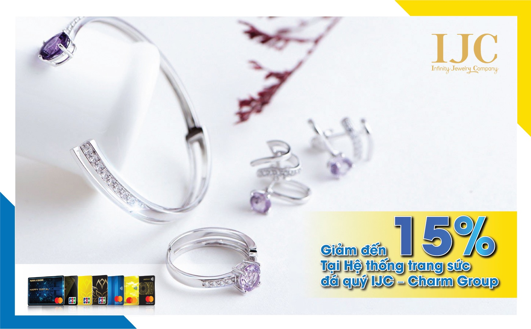 Giảm 15%/hóa đơn khi thanh toán Trang sức đá quý IJC cho các Chủ thẻ Nam A Bank vào dịp sinh nhật.