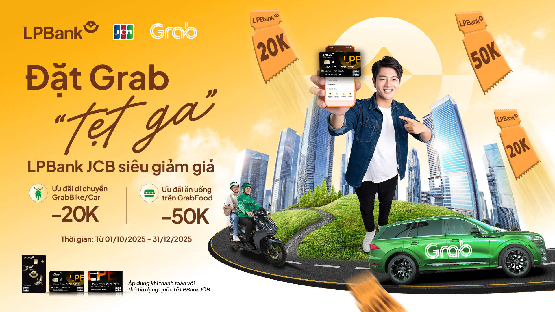 Đặt Grab, nhận deal cực hấp dẫn khi thanh toán bằng thẻ LPBank JCB! Dù đi làm hay đi chơi chọn thẻ LPBank JCB là giá tự động giảm! Chuyến đi tiện lợi, ưu đãi đầy ví – bạn đã sẵn sàng chưa?