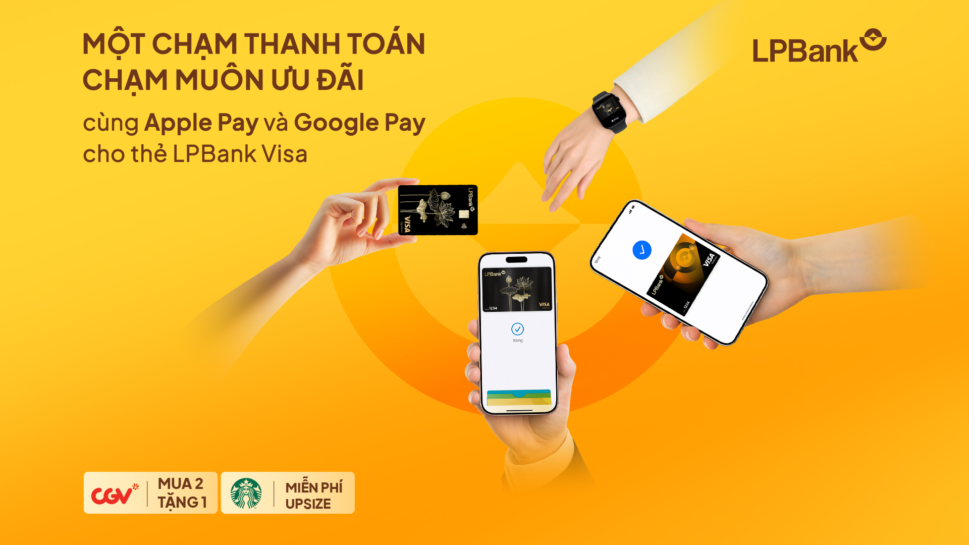Một chạm thanh toán, chạm muôn ưu đãi cùng Apple Pay và Google Pay cho thẻ LPBank Visa