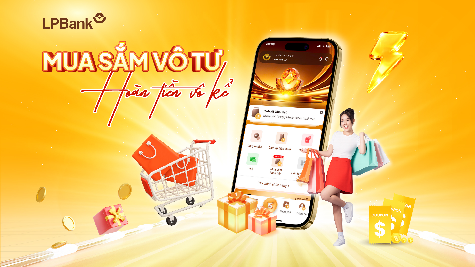 Mua sắm vô tư, hoàn tiền vô kể trên ứng dụng LPBank!
