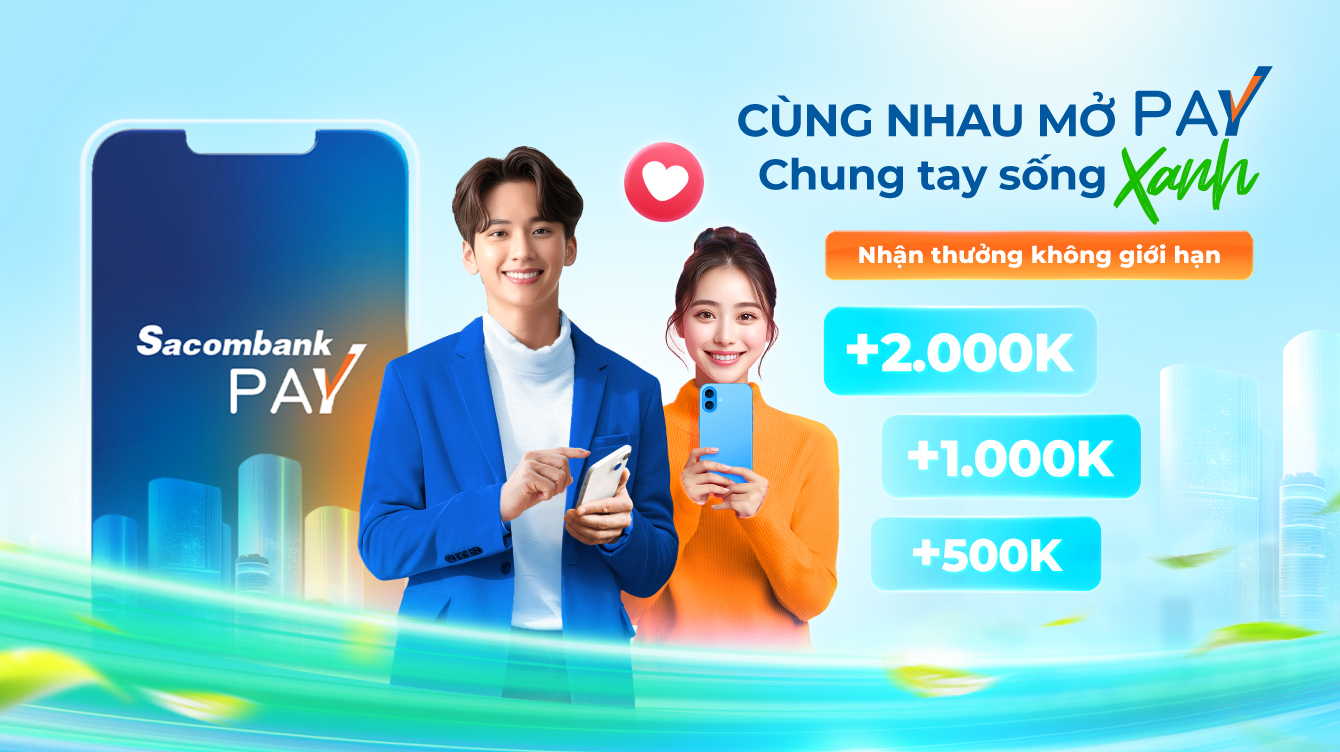 - Người được giới thiệu: Tặng tiền khi Khách hàng tải, đăng ký, định danh, mở mới TKTT trên Sacombank Pay và phát sinh giao dịch tối thiểu 50.000 VND trên TKTT trong tháng mở tài khoản.