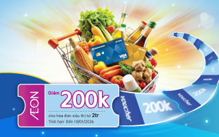 Nhận ngay voucher AEON giảm 200,000 đồng cho Khách hàng có hóa đơn siêu thị từ 2,000,000 đồng và thanh toán bằng thẻ tín dụng Shinhan