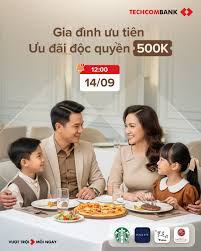 Khách hàng đăng ký tham gia Dịch vụ Ngân hàng Gia đình (Family Banking) với tối thiểu 02 thành viên, có hạng gia đình thăng hạng lên danh hiệu Gia đình Vươn Xa trong thời gian diễn ra chương trình khuyến mại này. | Mỗi gia đình nhận được 02 lượt sử dụng PCSB Techcombank Private Lounge. |