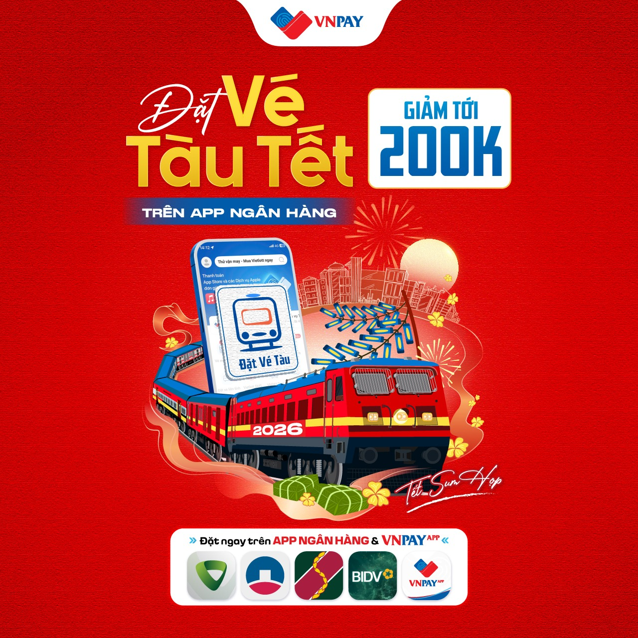 Nếu bạn đang lên kế hoạch về quê sum vầy dịp Tết, đây là lúc đặt vé sớm để hành trình trọn vẹn hơn. Từ nay đến hết 30/09/2025, ứng dụng VNPAY cùng các ứng dụng ngân hàng quen thuộc mang đến ưu đãi hấp dẫn – giảm tới 200.000 đồng cho tính năng Đặt vé tàu.