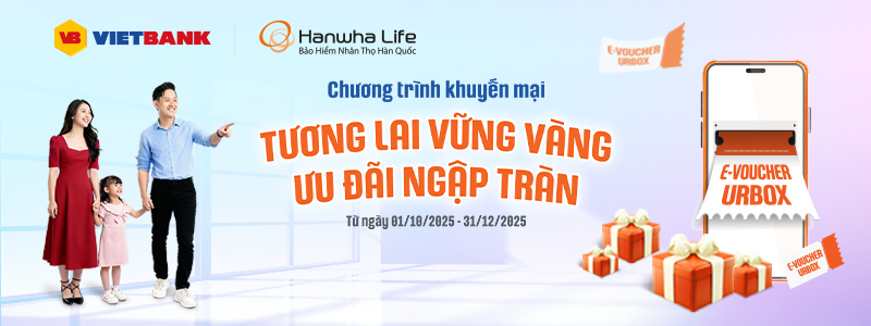 Từ ngày 01/10/2025 – 31/12/2025, Vietbank và Hanwha Life tri ân lớn đến khách hàng tham gia Hợp đồng bảo hiểm với quà tặng E-voucher Urbox cực hấp dẫn.