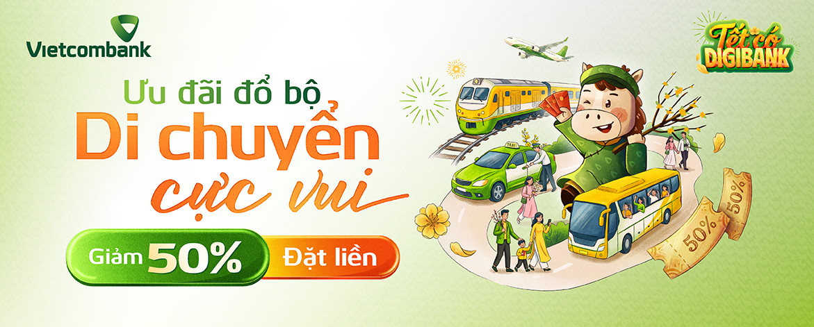 Từ ngay 25/12/2025 - 31/1/2026, nhằm mang đến cho khách hàng một mùa Tết an tâm, thuận tiện và tiết kiệm hơn trong mọi hành trình di chuyển, VNPAY và Vietcombank triển khai chương trình khuyến mại “Tết có Digibank - Ưu đãi đổ bộ - Di chuyển cực vui” với hàng loạt ưu đãi hấp dẫn dành cho khách hàng sử dụng các tính năng di chuyển trên Ứng dụng VCB Digibank.