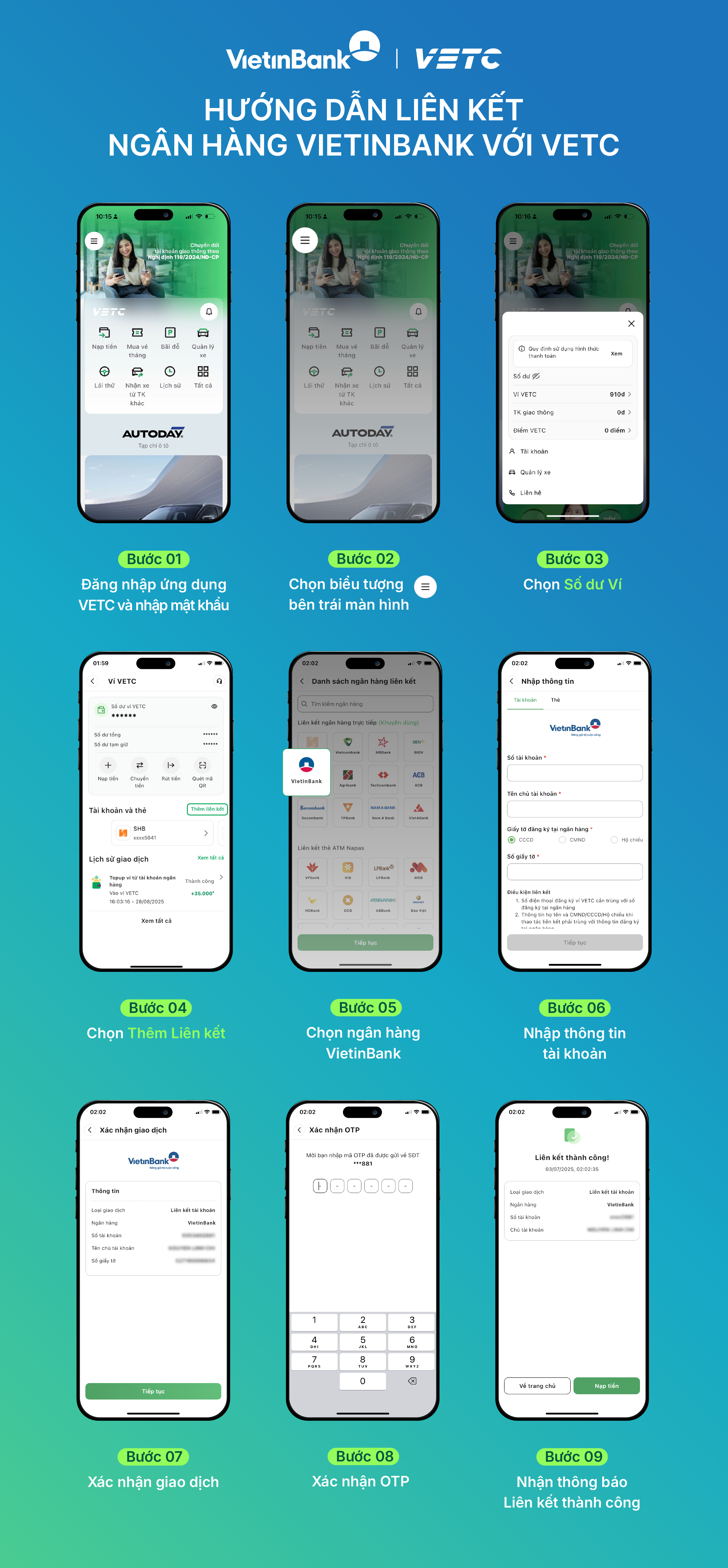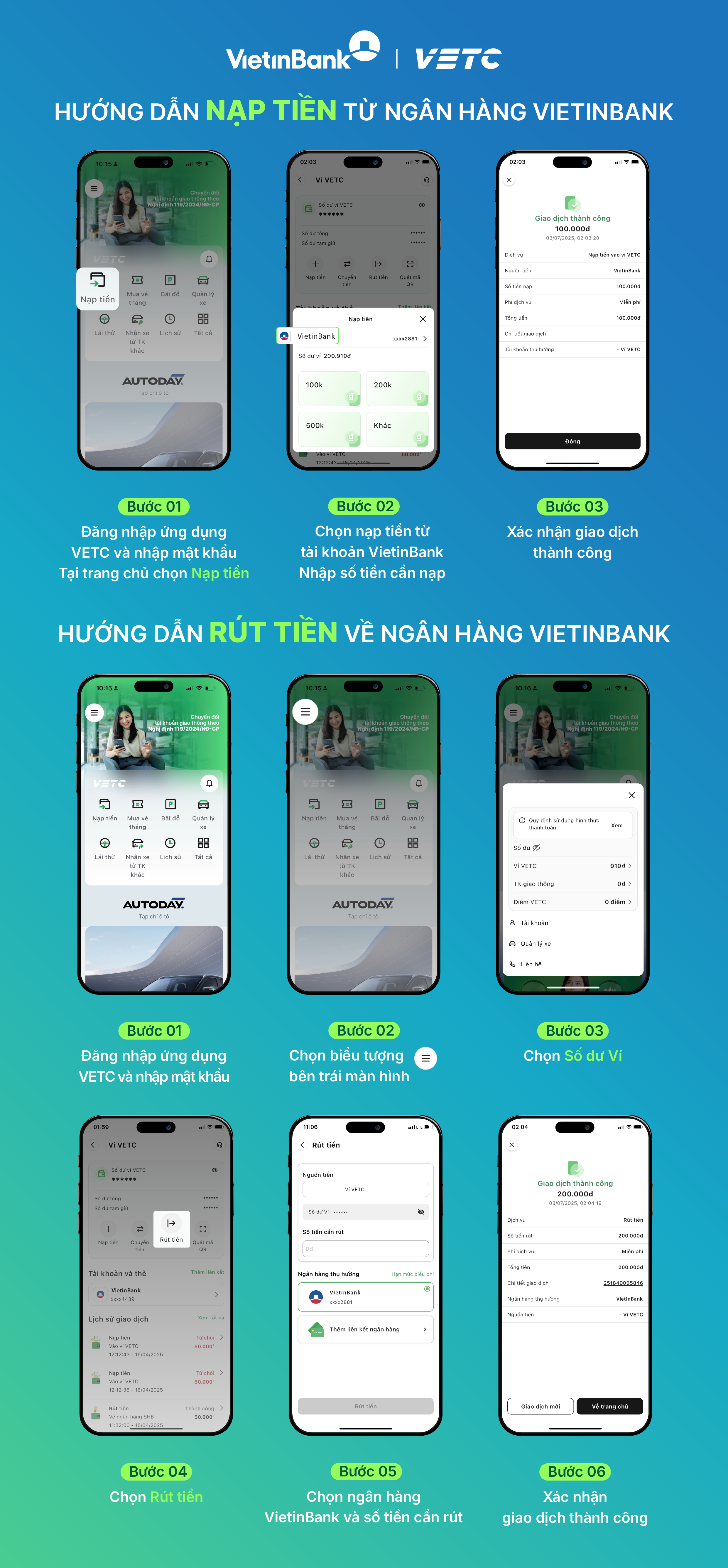 Hướng dẫn liên kết Tài khoản thanh toán VietinBank với tài khoản giao thông VETC: